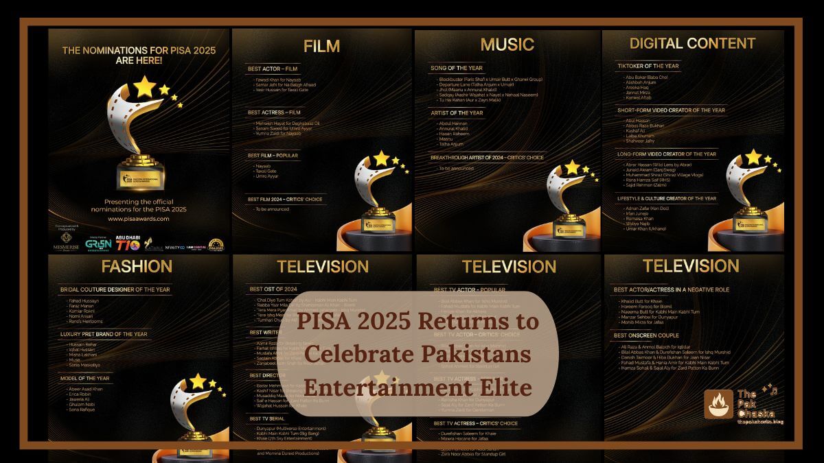 The stage is set, the excitement is building, and now it’s time for Pakistan’s biggest stars to shine! The PISA 2025 (Pakistan International Screen Awards) is back! The big event for movies, TV shows, music, fashion, and digital content is getting ready to honor the best in Pakistan’s entertainment industry. Some of the biggest names in show business will be there for a night of glamour, talent, and national pride.